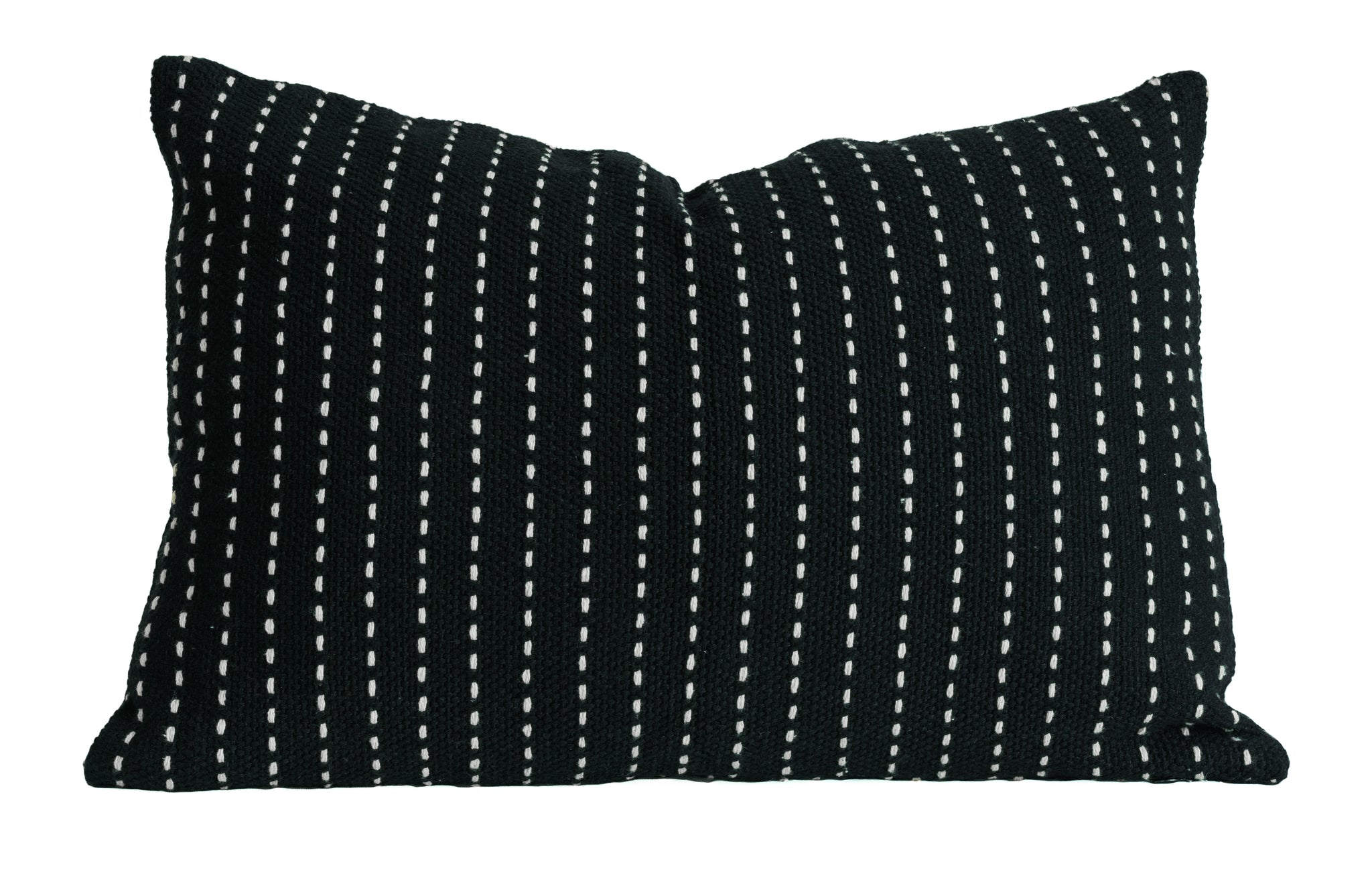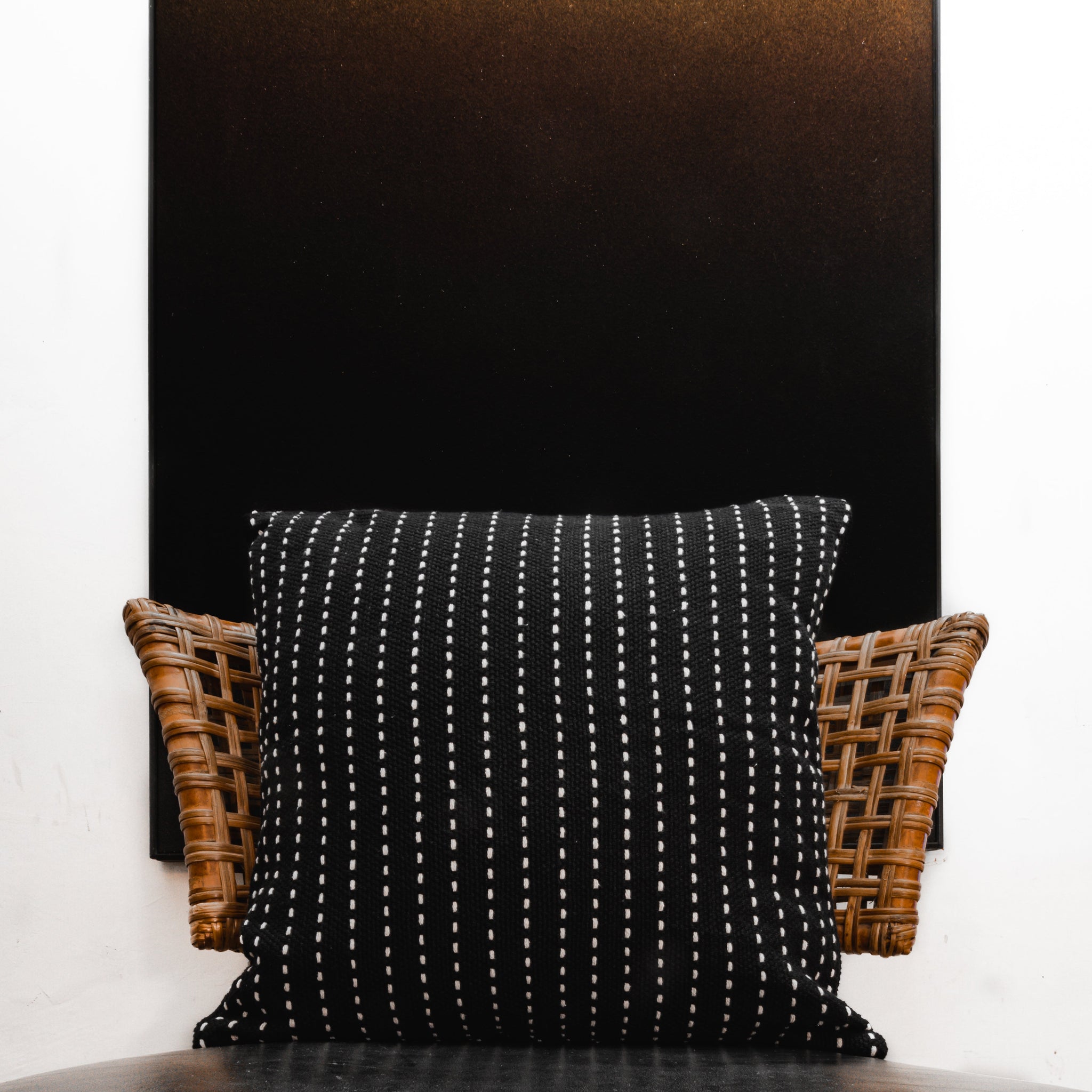 The striking contrast between the black cotton weave and white running stitches makes our Black Running Stitch piece an obvious choice when you are looking for that high quality black accent amidst a sea of neutrals. It's also the perfect cotton cushion cover choice for a TV Den or study if you are attempting to bring in that moodiness into the space.