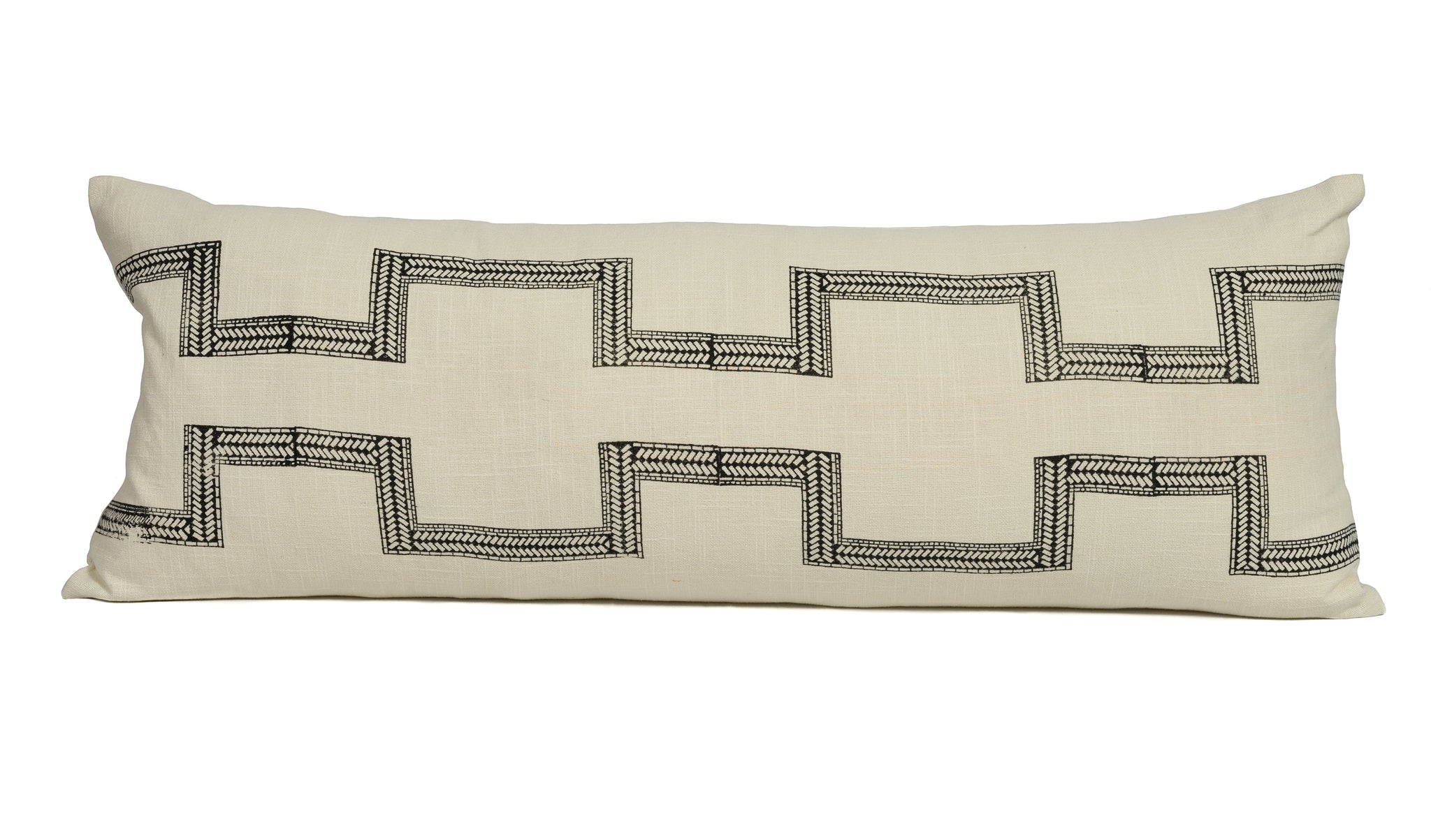 A reflected striking bold and black border was the initial idea behind our Cuadro Extra Long lumbar cushion cover.The intricacies of the block printed pattern off-set by the ivory cotton cushion cover fabric, makes for quite the statement piece on any bedroom or living space.